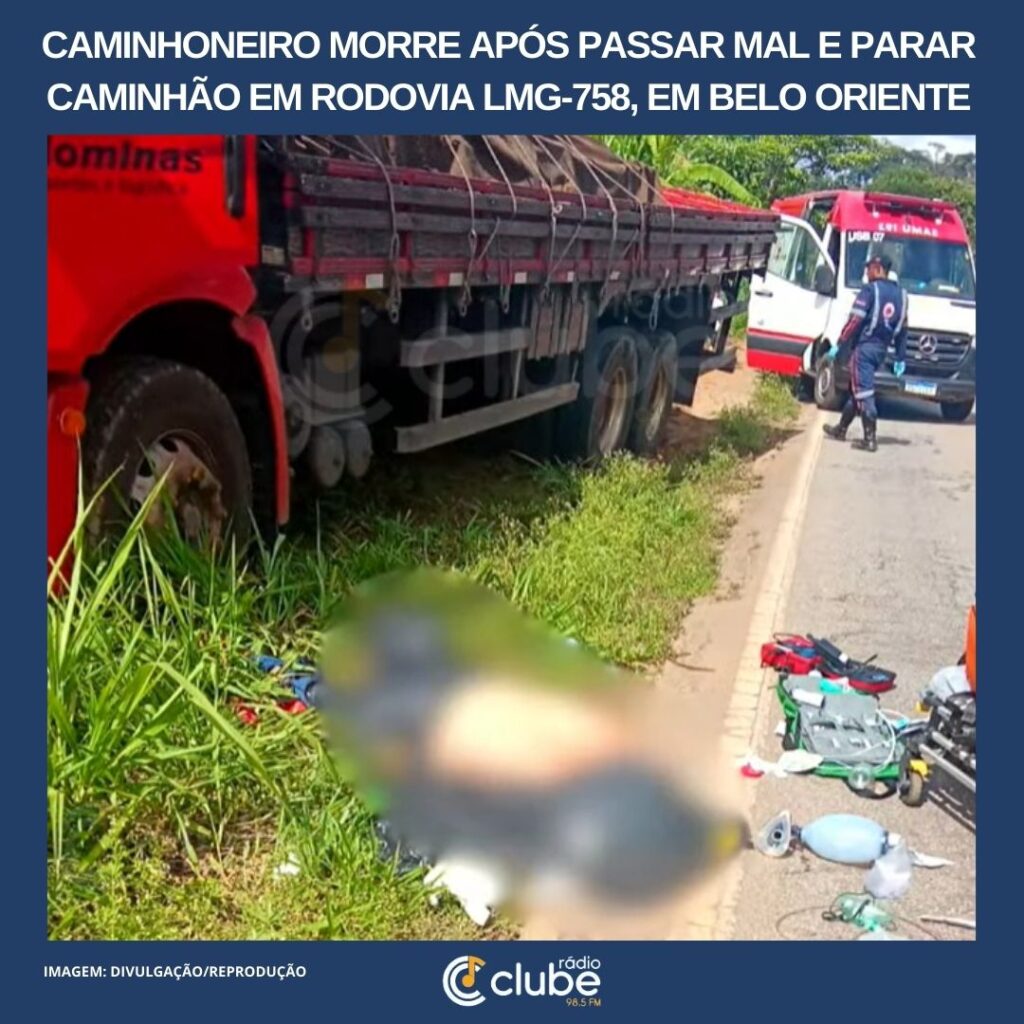 Caminhoneiro morre após passar mal e parar caminhão em rodovia LMG-758, em Belo Oriente