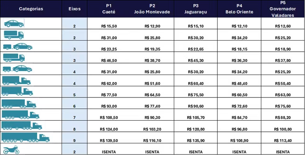 A partir da meia-noite do dia 17 de novembro, motoristas que trafegam pela BR-381, entre Belo Horizonte e Governador Valadares, vão começar a pagar pedágio em mais três pontos da rodovia. As novas praças eletrônicas estão instaladas em Jaguaraçu, Belo Oriente e Governador Valadares.