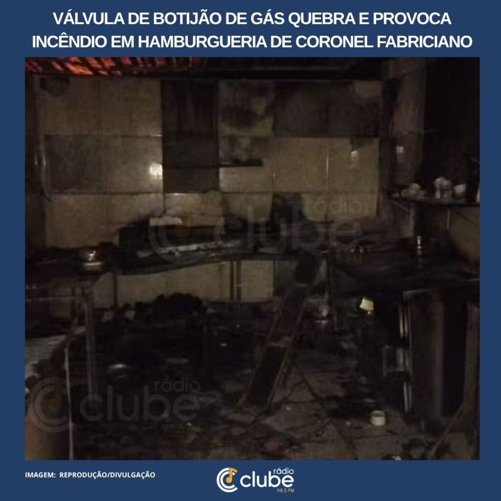 Válvula de botijão de gás quebra e provoca incêndio em hamburgueria de Coronel Fabriciano