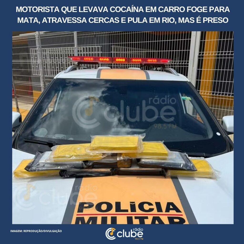 Motorista que levava cocaína em carro foge para mata, atravessa cercas e pula em rio, mas é preso