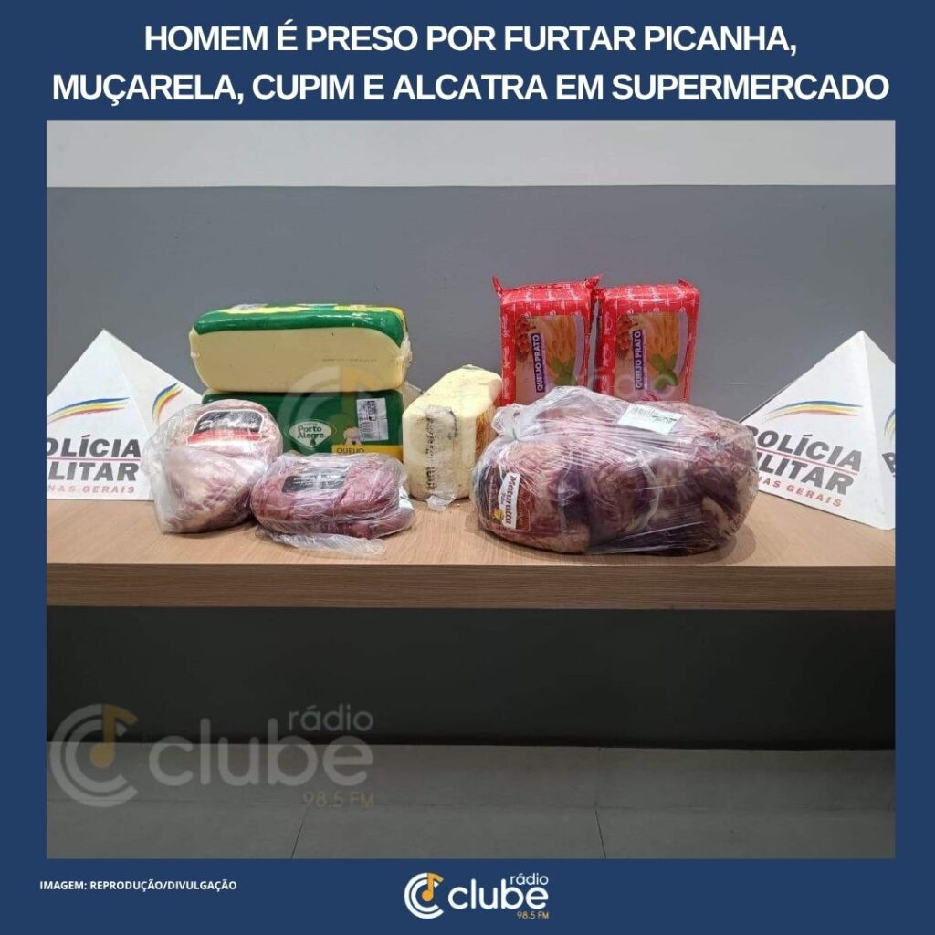 Homem é preso por furtar picanha, muçarela, cupim e alcatra em supermercado