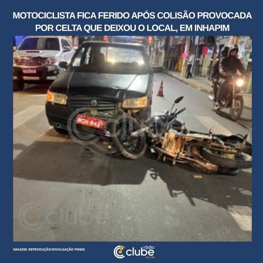 MOTOCICLISTA FICA FERIDO APÓS COLISÃO PROVOCADA POR CELTA QUE DEIXOU O LOCAL, EM INHAPIM