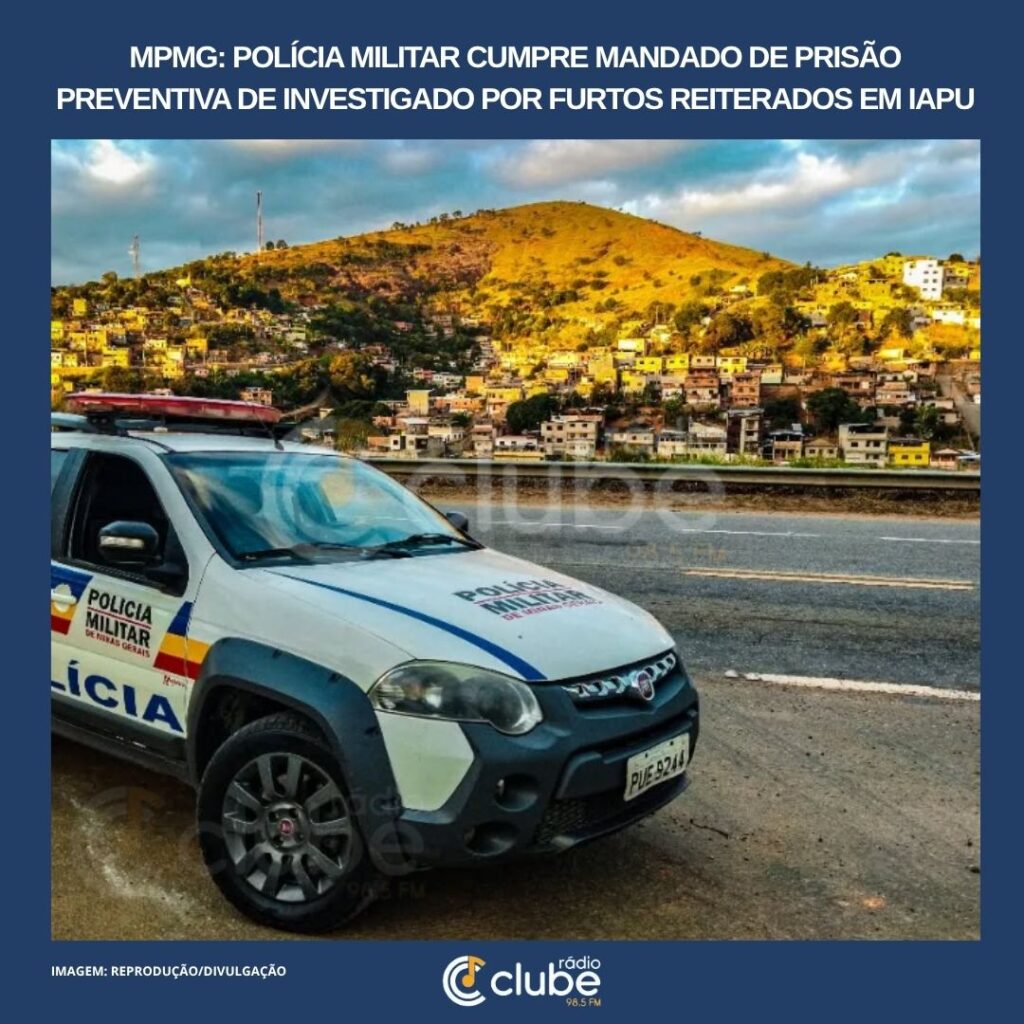 MPMG: POLÍCIA MILITAR CUMPRE MANDADO DE PRISÃO PREVENTIVA DE INVESTIGADO POR FURTOS REITERADOS EM IAPU