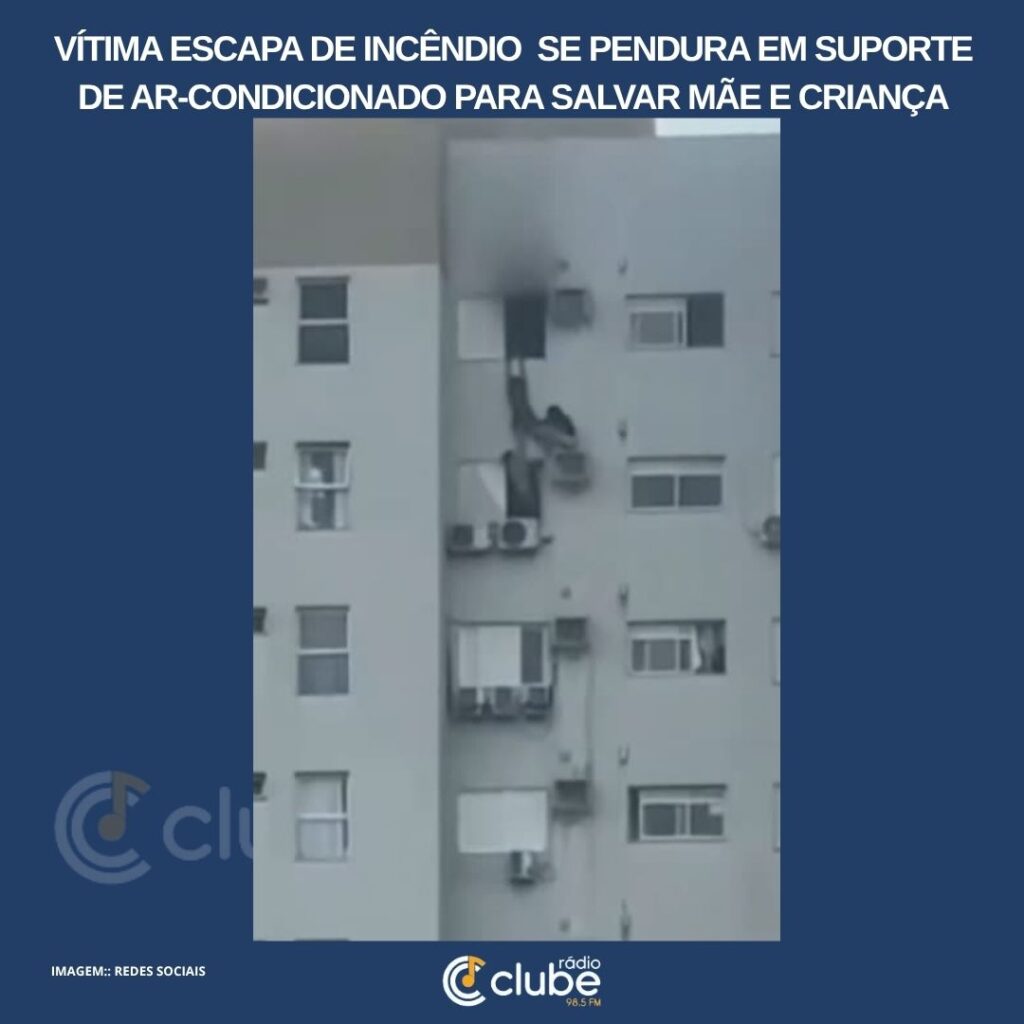 Vítima escapa de incêndio e se pendura em suporte de ar-condicionado para salvar mãe e criança