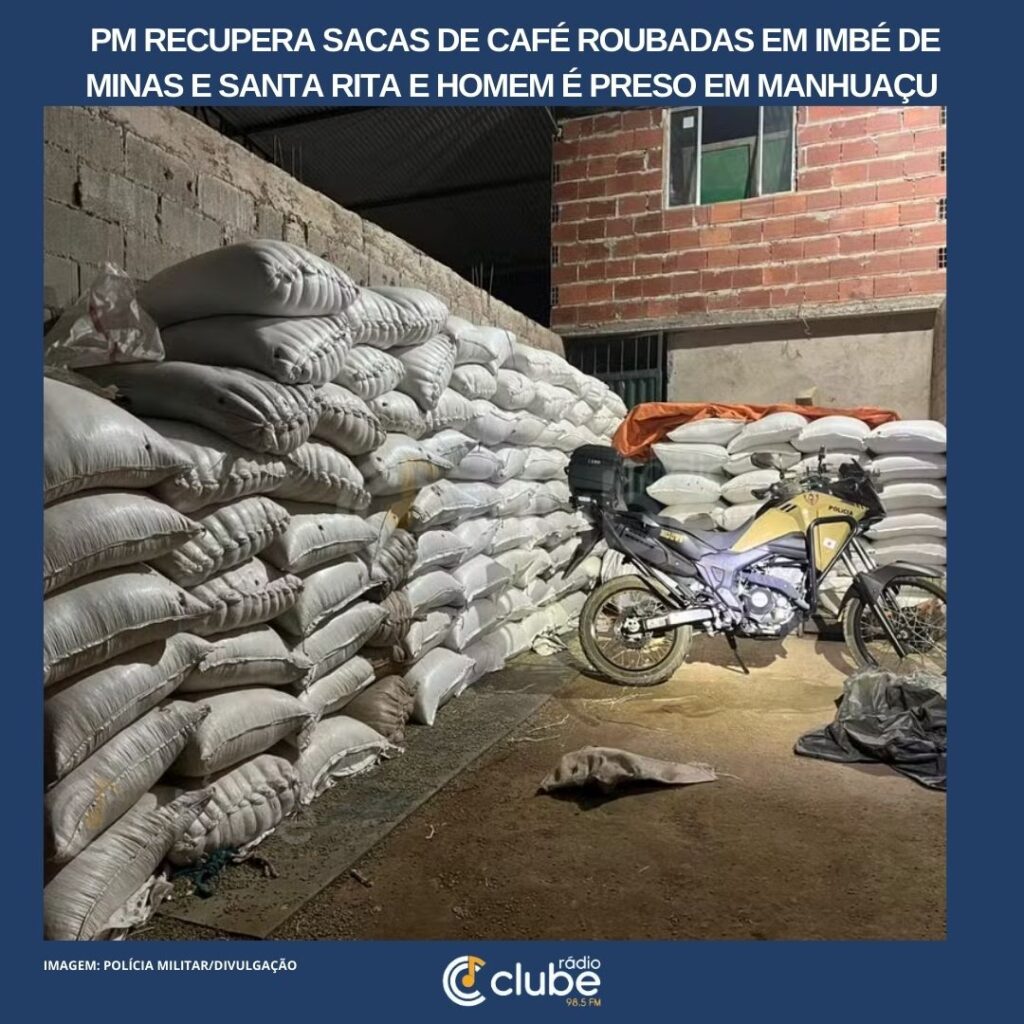 PM recupera sacas de café roubadas em Imbé de Minas e Santa Rita e homem é preso em Manhuaçu
