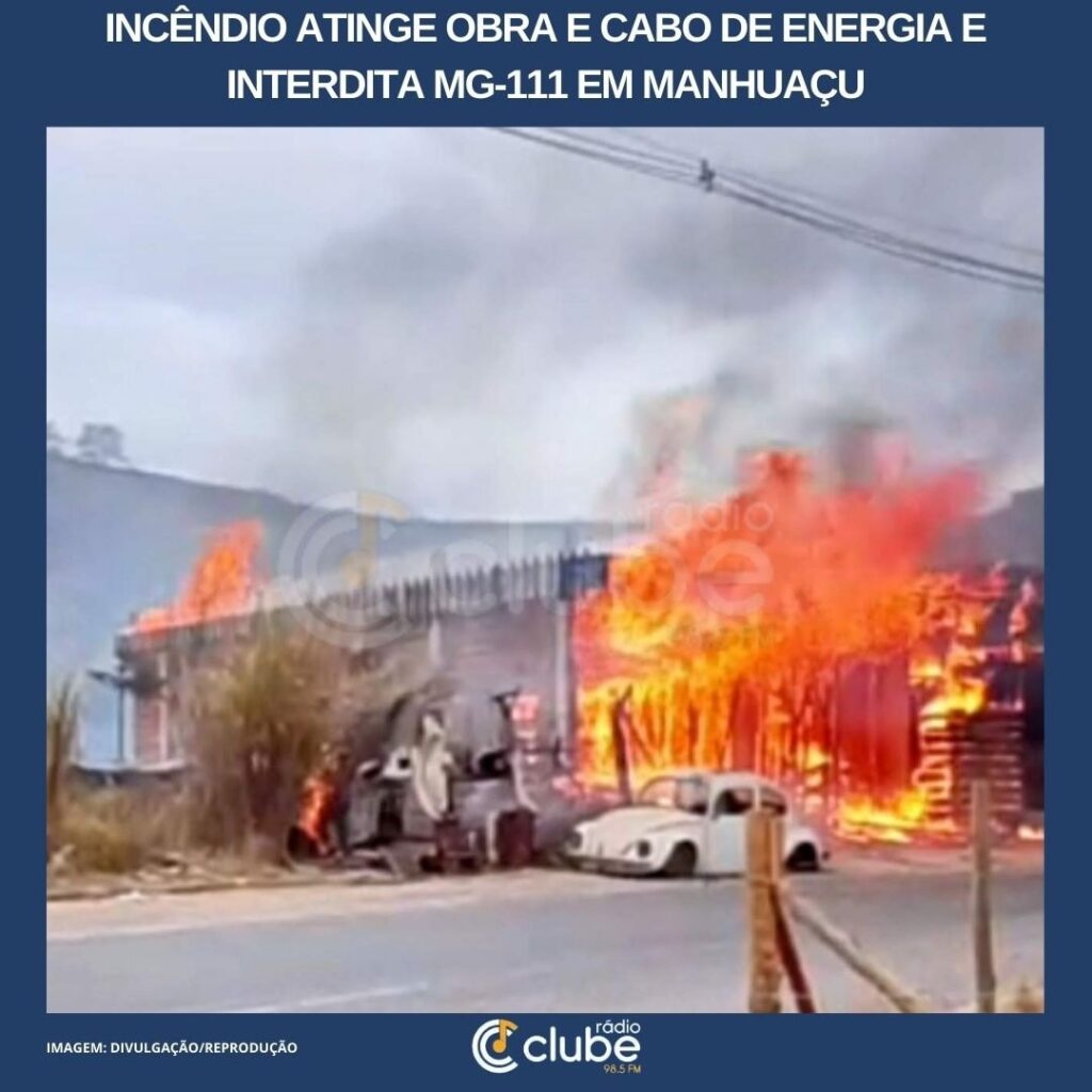 Incêndio atinge obra e cabo de energia e interdita MG-111 em Manhuaçu