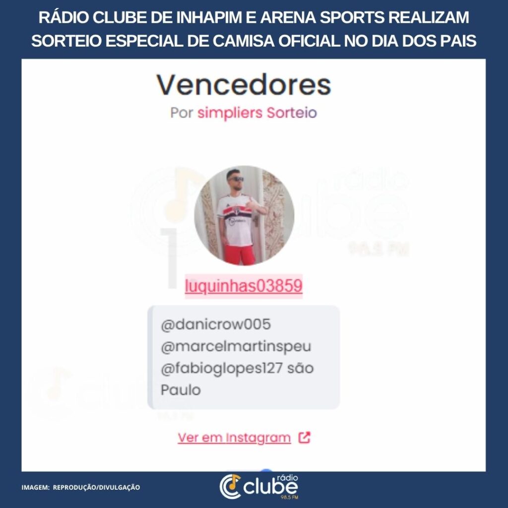 Rádio Clube de Inhapim e Arena Sports realizam sorteio especial de camisa oficial no Dia dos Pais