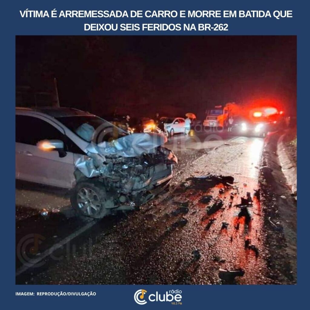 Vítima é arremessada de carro e morre em batida que deixou seis feridos na BR-262