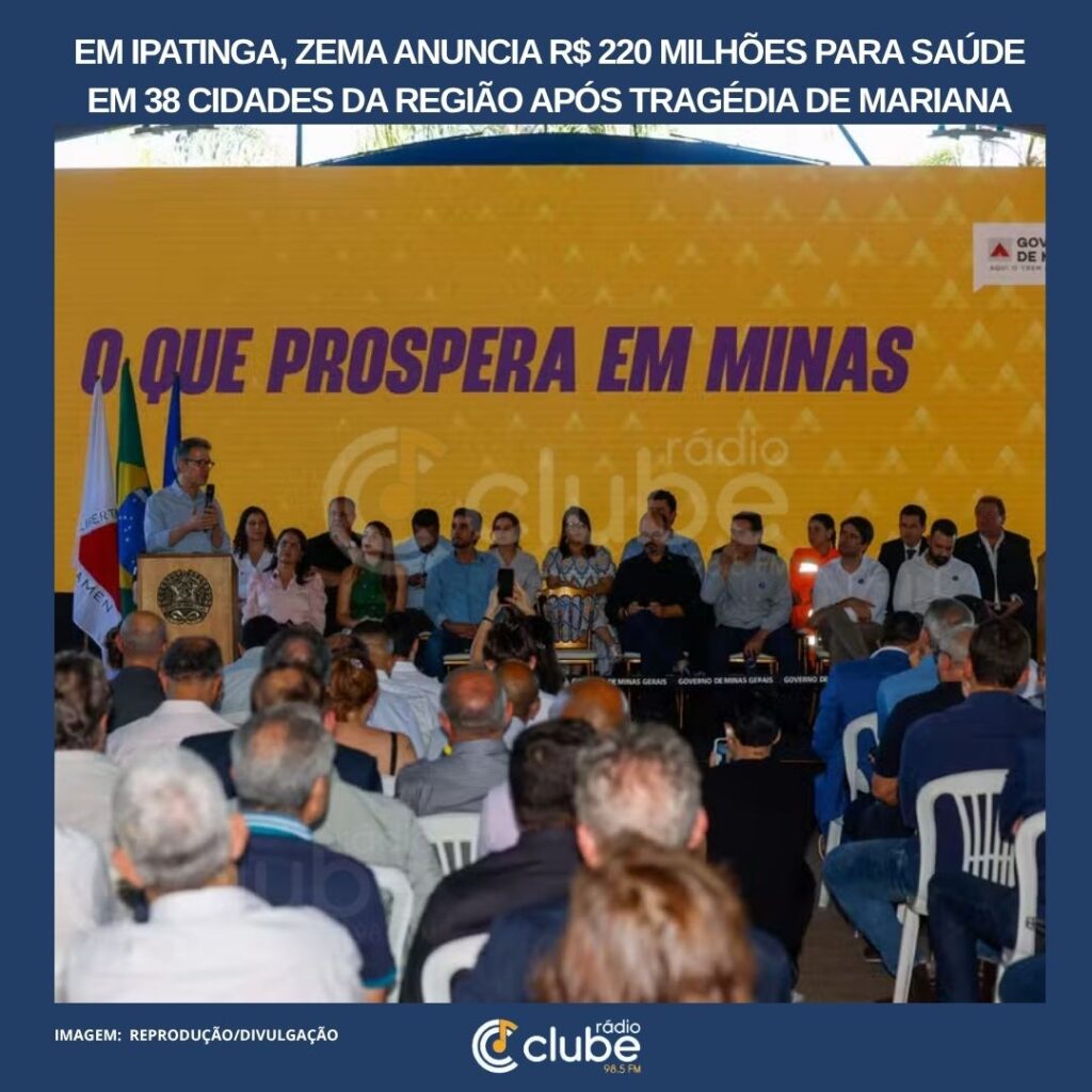 Em Ipatinga, Zema anuncia R$ 220 milhões para saúde em 38 cidades da região após tragédia de Mariana