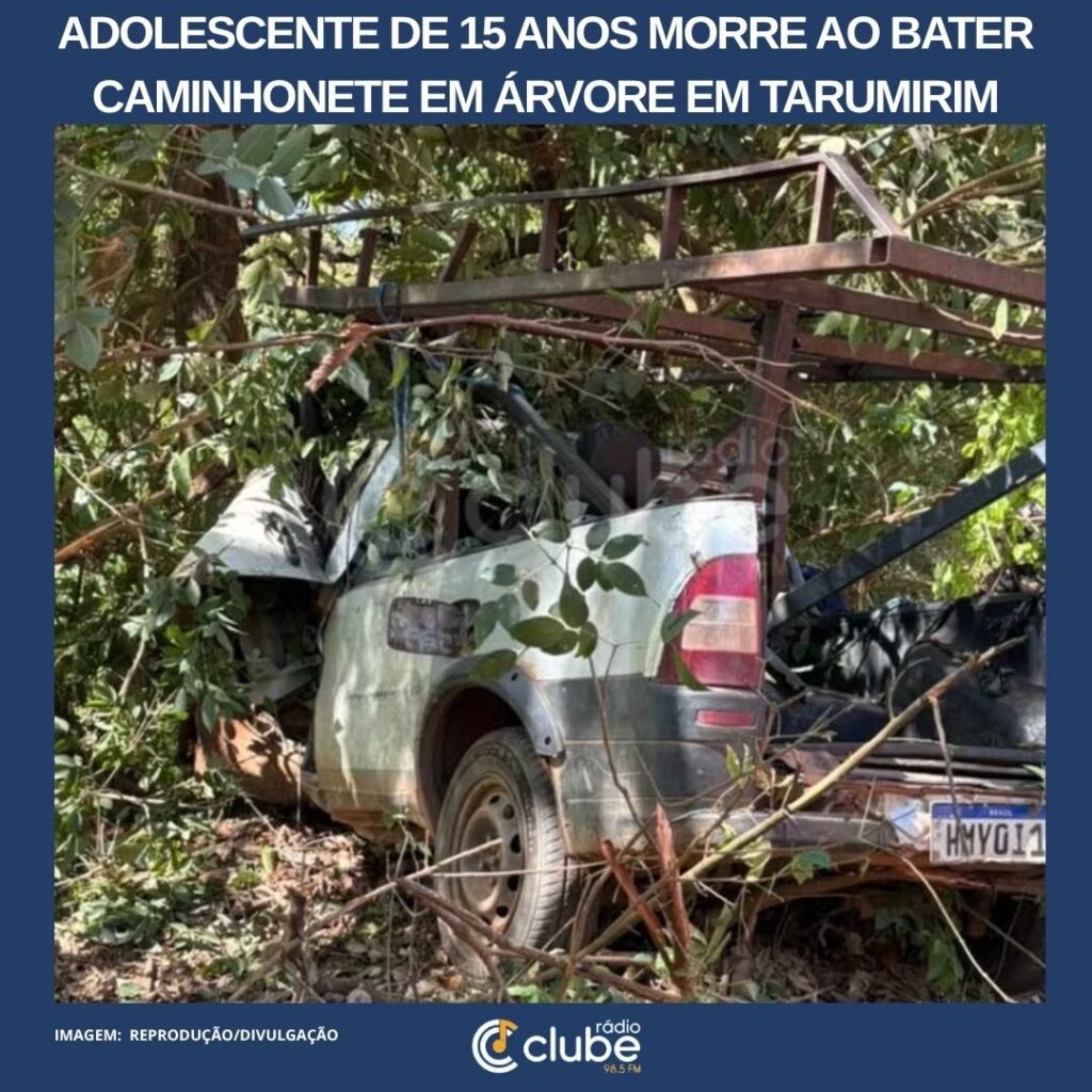 Adolescente de 15 anos morre ao bater caminhonete em árvore em Tarumirim