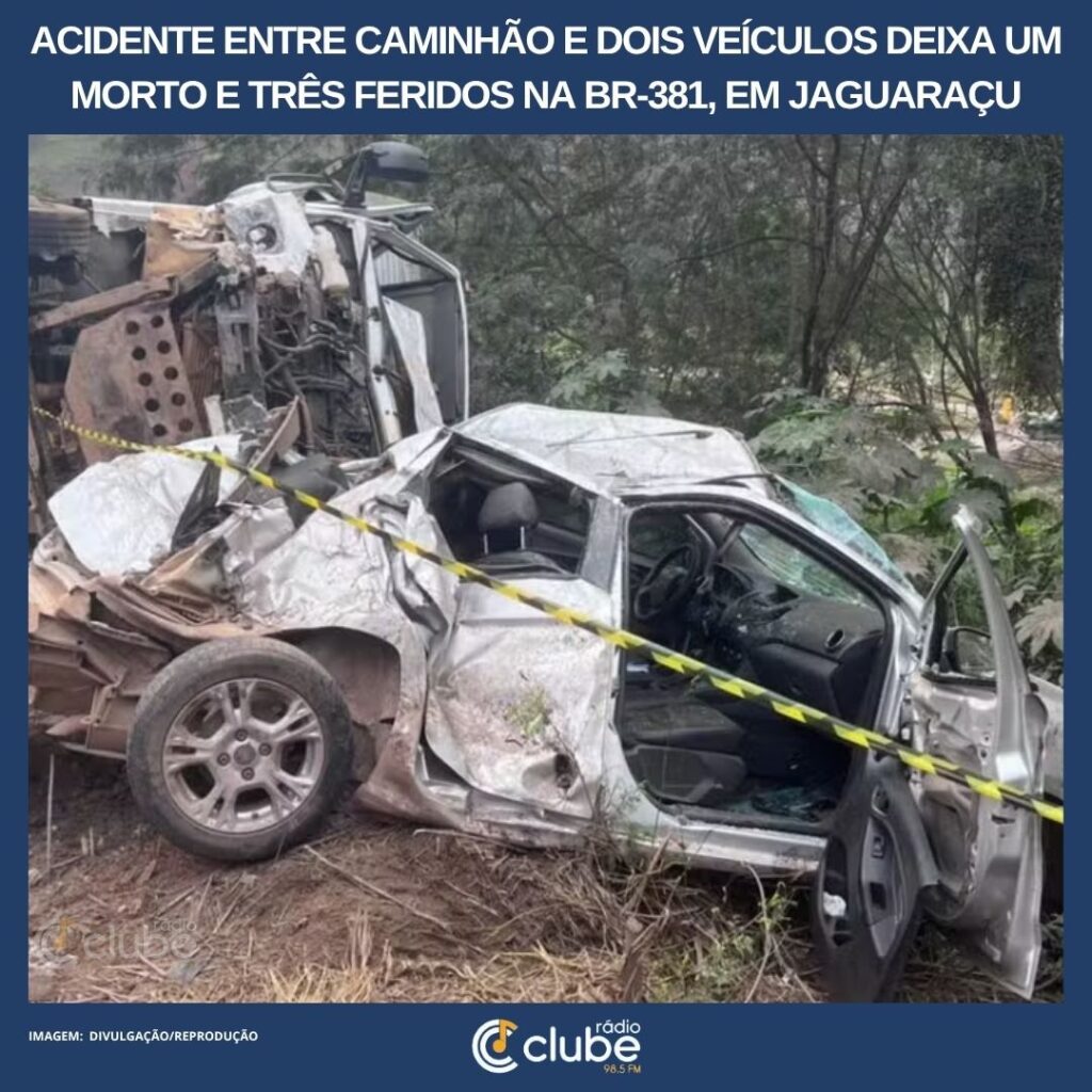 Um acidente envolvendo um caminhão baú, uma caminhonete e um carro de passeio deixou um homem morto e outras três pessoas feridas, na manhã desta quarta-feira (4), na BR-381, em Jaguaraçu, no Vale do Aço. De acordo com o Corpo de Bombeiros, o motorista do caminhão, identificado como Gabriel Moreira Socorro, de 29 anos, foi […]