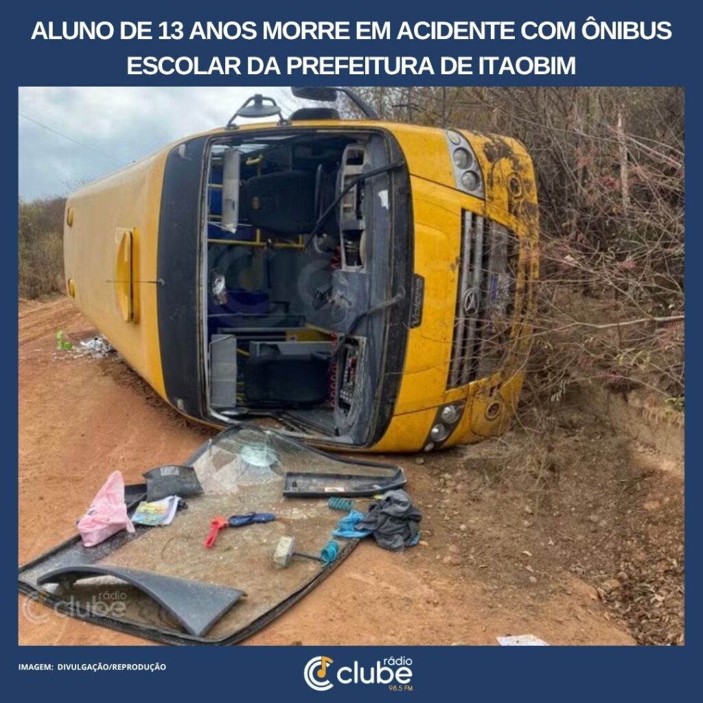 Aluno de 13 anos morre em acidente com ônibus escolar da Prefeitura de Itaobim
