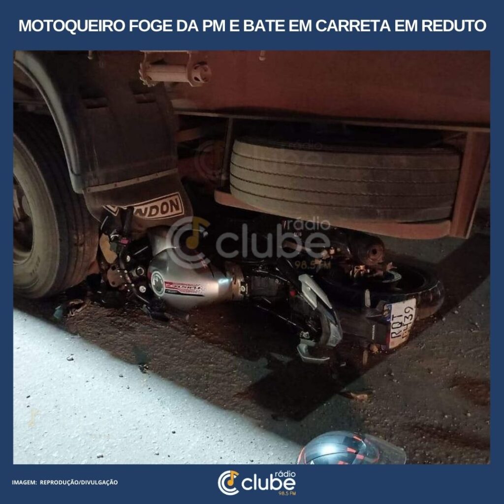 Motoqueiro foge da PM e bate em carreta em Reduto