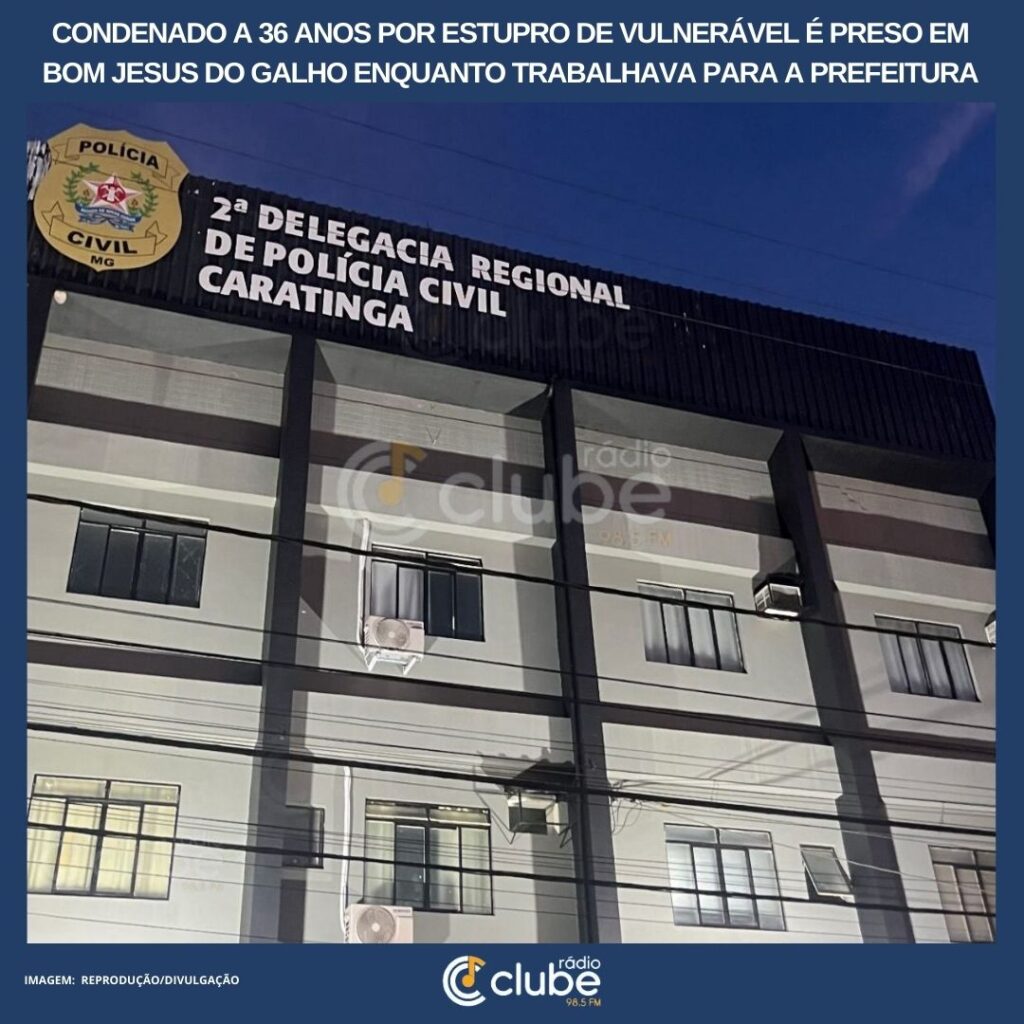 Condenado a 36 anos por estupro de vulnerável é preso em Bom Jesus do Galho enquanto trabalhava para a prefeitura