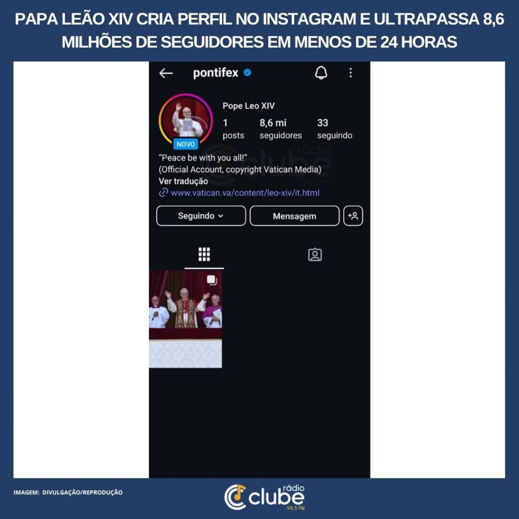 O Papa Leão XIV criou um perfil no Instagram nesta terça-feira (13), conforme anunciou o Vaticano. Em menos de 24 horas após a criação, a conta já supera a marca de 8,6 milhões de seguidores. “Siga o Papa Leão XIV no Instagram”, publicou o Vaticano na rede social X (antigo Twitter). A conta oficial do […]