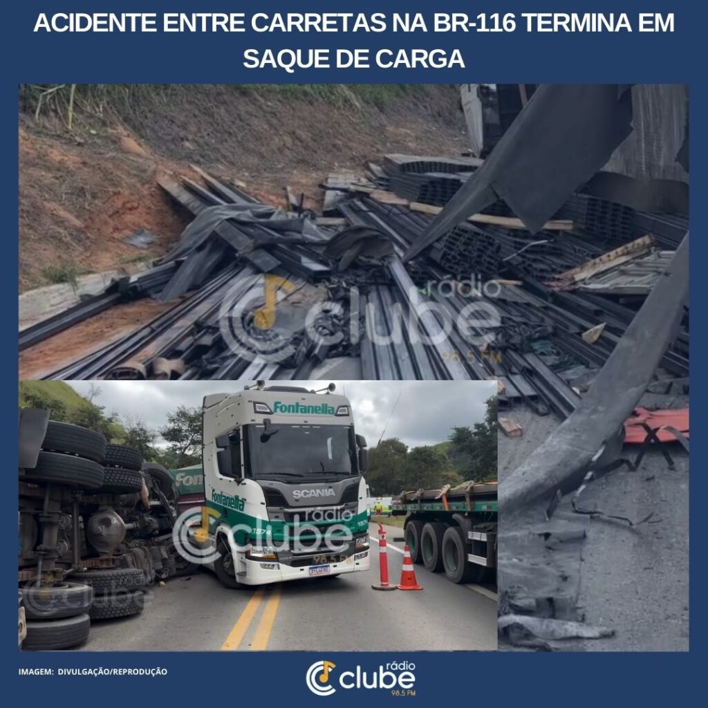 Um acidente envolvendo duas carretas causou transtornos e levou ao saque de carga na manhã deste domingo (11), no km 534 da BR-116, próximo à cidade de Santa Rita de Minas. Segundo informações da Polícia Rodoviária Federal (PRF), uma das carretas, que transportava metalão e seguia sentido Caratinga, tombou parcialmente após o motorista perder o […]