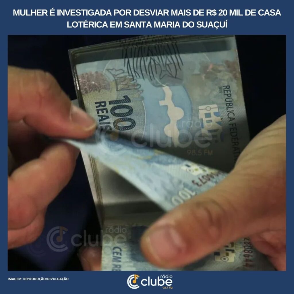 Mulher é investigada por desviar mais de R$ 20 mil de casa lotérica em Santa Maria do Suaçuí
