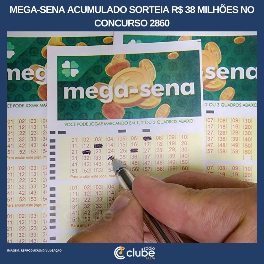 Mega-Sena acumulado sorteia R$ 38 milhões no concurso 2860