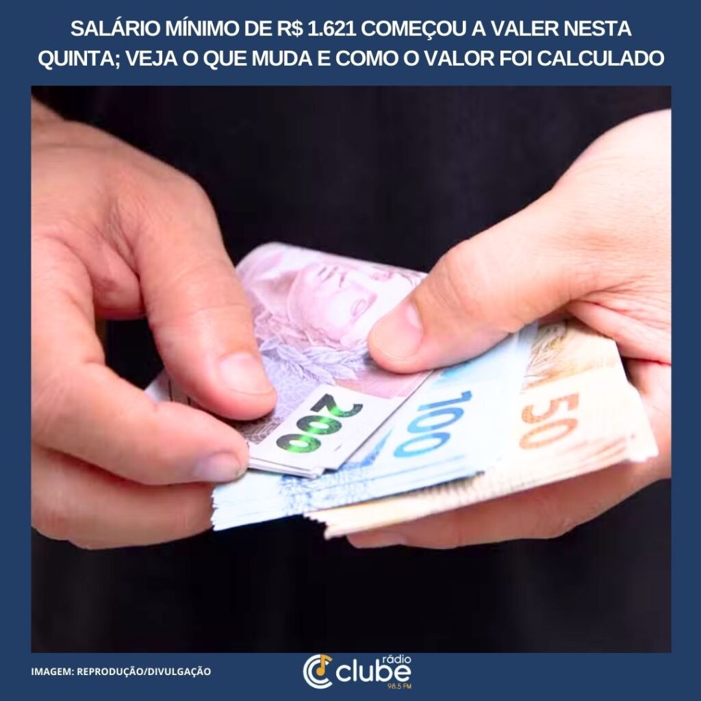 O novo valor do salário mínimo nacional, de R$ 1.621, começou a valer a nesta quinta-feira (1º). O reajuste é de 6,79% em relação ao piso anterior, de R$ 1.518, e reflete a inflação medida pelo INPC (Índice Nacional de Preços ao Consumidor) em 12 meses até novembro, somada a um ganho real limitado pela […]