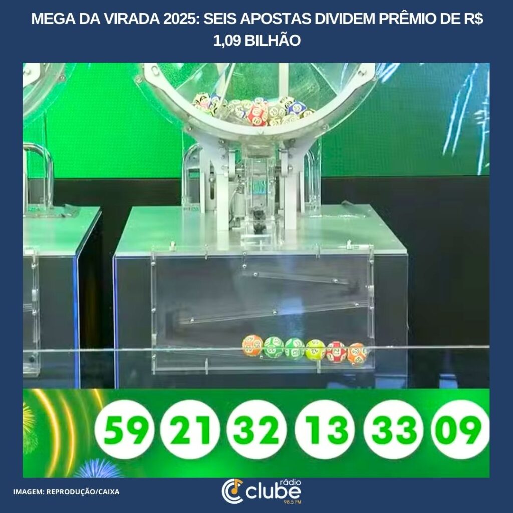 Após adiar o sorteio da Mega da Virada 2025 por problemas técnicos, a Caixa divulgou, na manhã desta quinta-feira (1º), as dezenas que garantiram o maior prêmio da história da loteria: R$ 1,09 bilhão. Cada uma delas vai levar R$ 181.892.881,09. Os números sorteados foram: 09 – 13 – 21 – 32 – 33 – […]