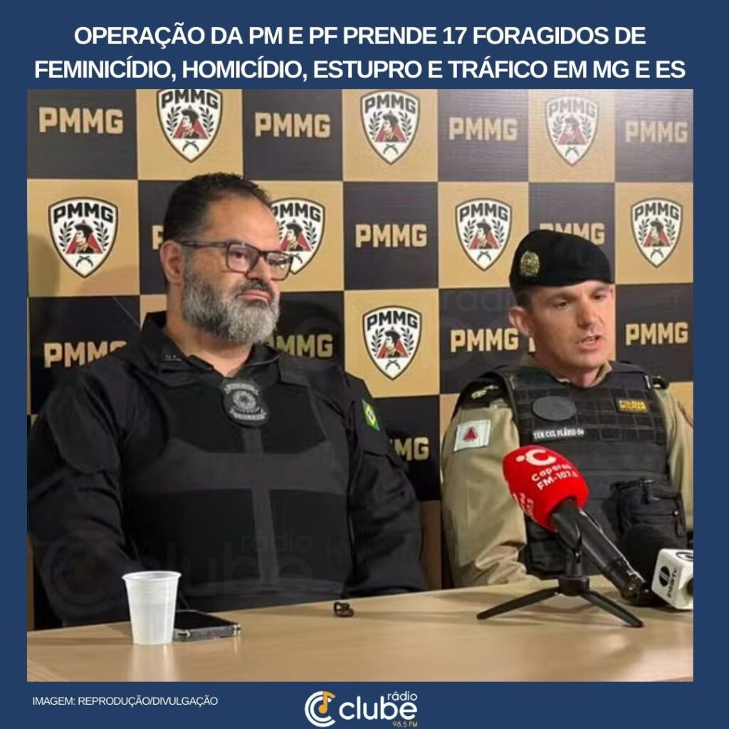 Uma operação conjunta da Polícia Federal, da Polícia Militar de Minas Gerais e da Polícia Militar do Espírito Santo prendeu 17 foragidos da Justiça na quarta-feira (25). A ação, chamada Operação Rio Grande, aconteceu em 11 cidades dos dois estados e mirou suspeitos procurados por crimes como homicídio qualificado, estupro de vulnerável, estupro contra mulheres, […]