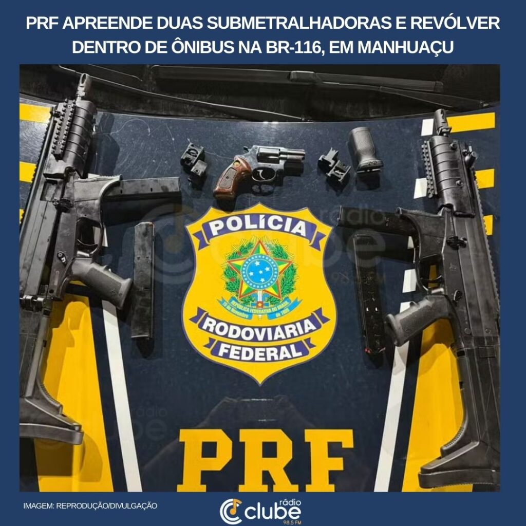 A Polícia Rodoviária Federal apreendeu duas submetralhadoras e um revólver dentro de um ônibus interestadual na BR-116, em Manhuaçu, na noite deste sábado (21). Um homem, de 61 anos, foi preso. Segundo a PRF, a abordagem foi feita por volta das 22h40, no km 588 da rodovia. O ônibus saiu do estado do Rio de […]