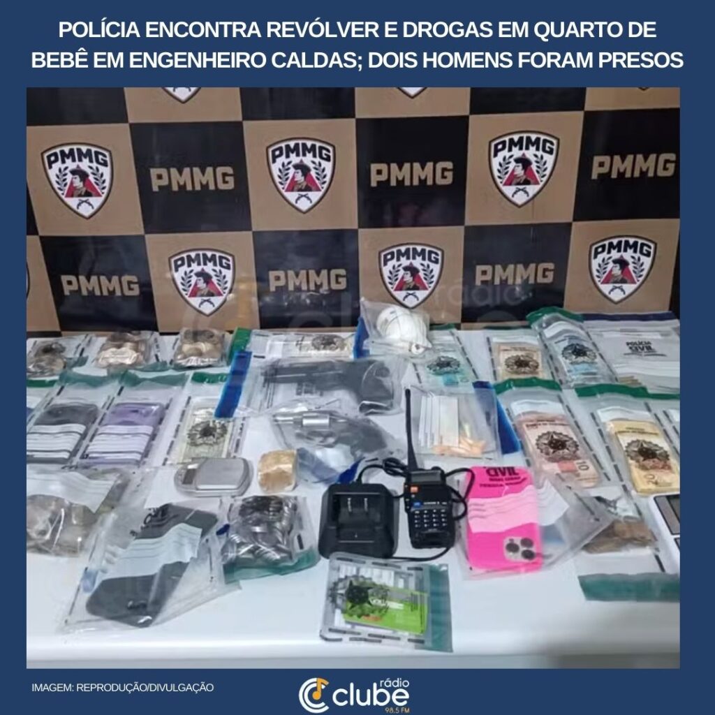 Polícia encontra revólver e drogas em quarto de bebê em Engenheiro Caldas; dois homens foram presos