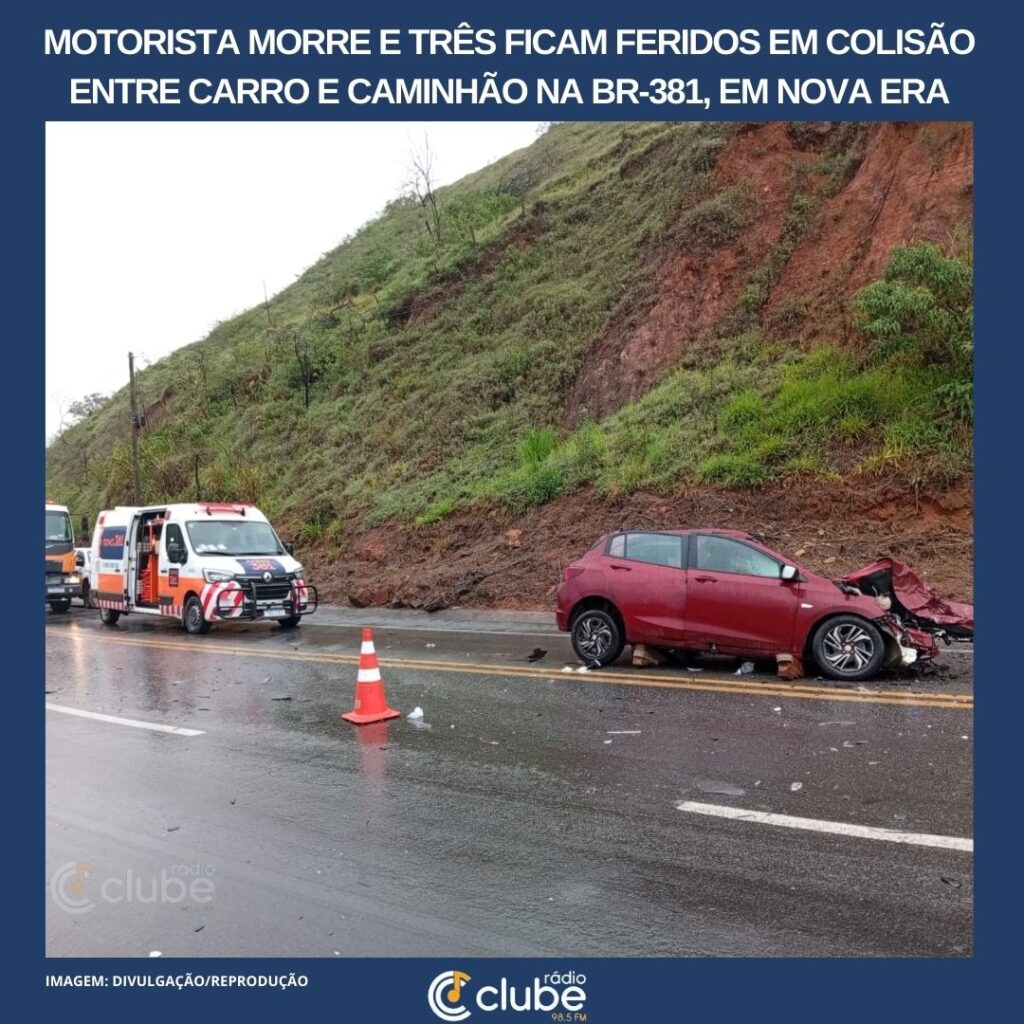 Motorista morre e três ficam feridos em colisão entre carro e caminhão na BR-381, em Nova Era