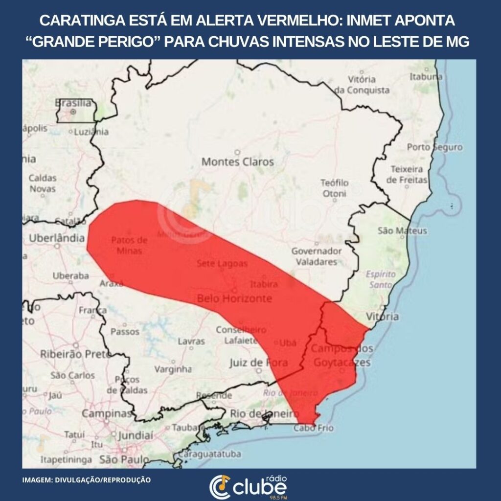 O Instituto Nacional de Meteorologia (INMET) emitiu um alerta vermelho de “grande perigo” para o acumulado de chuvas em 21 cidades do Leste de Minas Gerais, entre elas Caratinga, um dos principais polos urbanos da nossa região. O alerta, que representa o nível máximo de severidade, entrou em vigor nesta quinta-feira (22) e segue válido […]