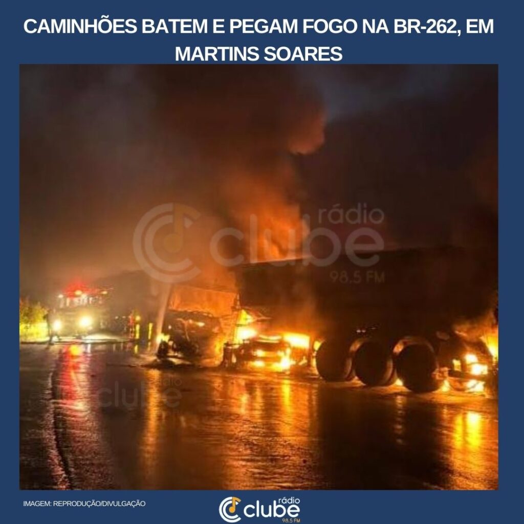Caminhões batem e pegam fogo na BR-262, em Martins Soares