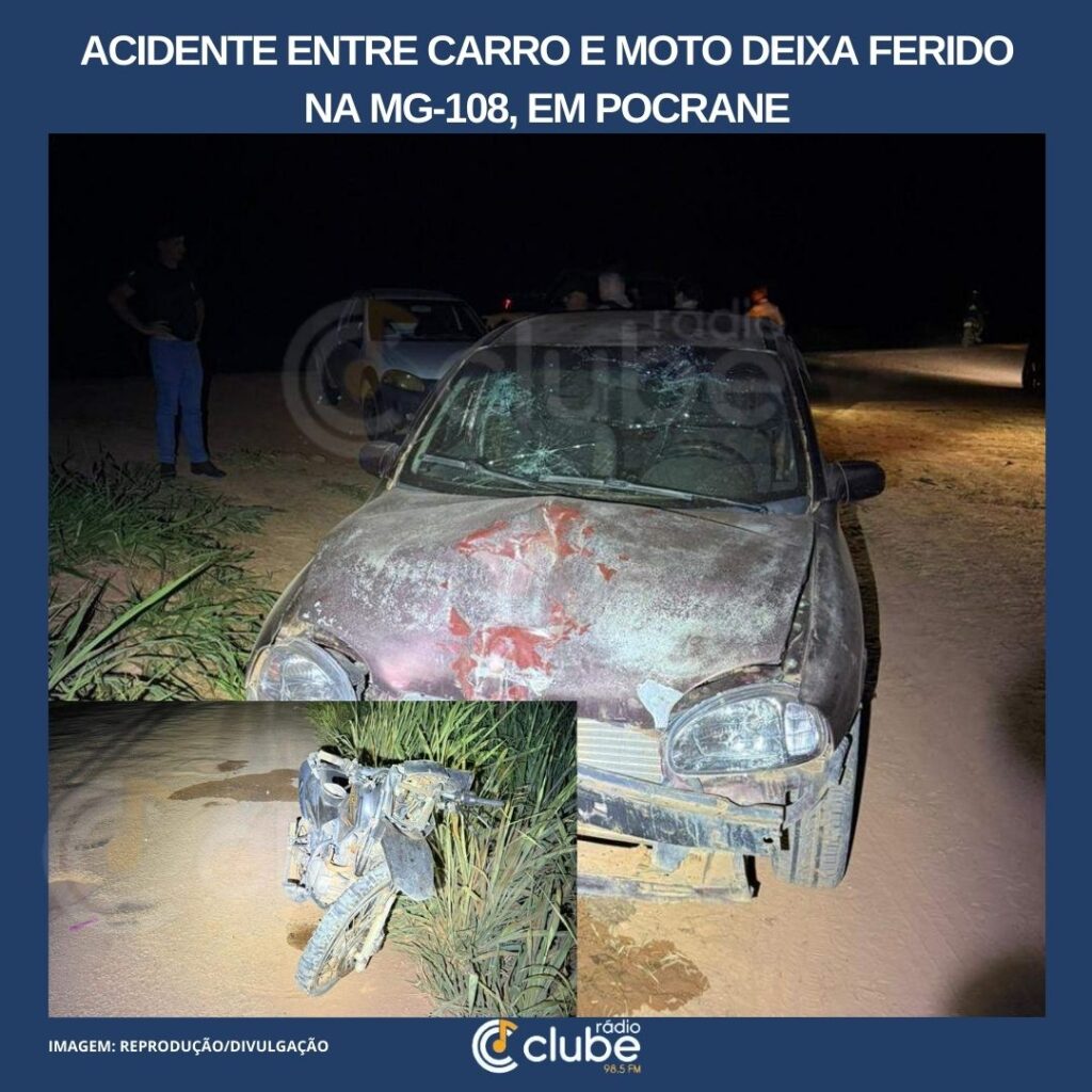 Um acidente de trânsito envolvendo um carro e uma motocicleta deixou um homem ferido na noite de quarta-feira (31/12), na rodovia MG-108, altura do km 105, em Pocrane. A ocorrência foi registrada por volta das 20h. De acordo com a Polícia Militar Rodoviária, a colisão aconteceu quando o motorista de um automóvel realizou uma conversão […]