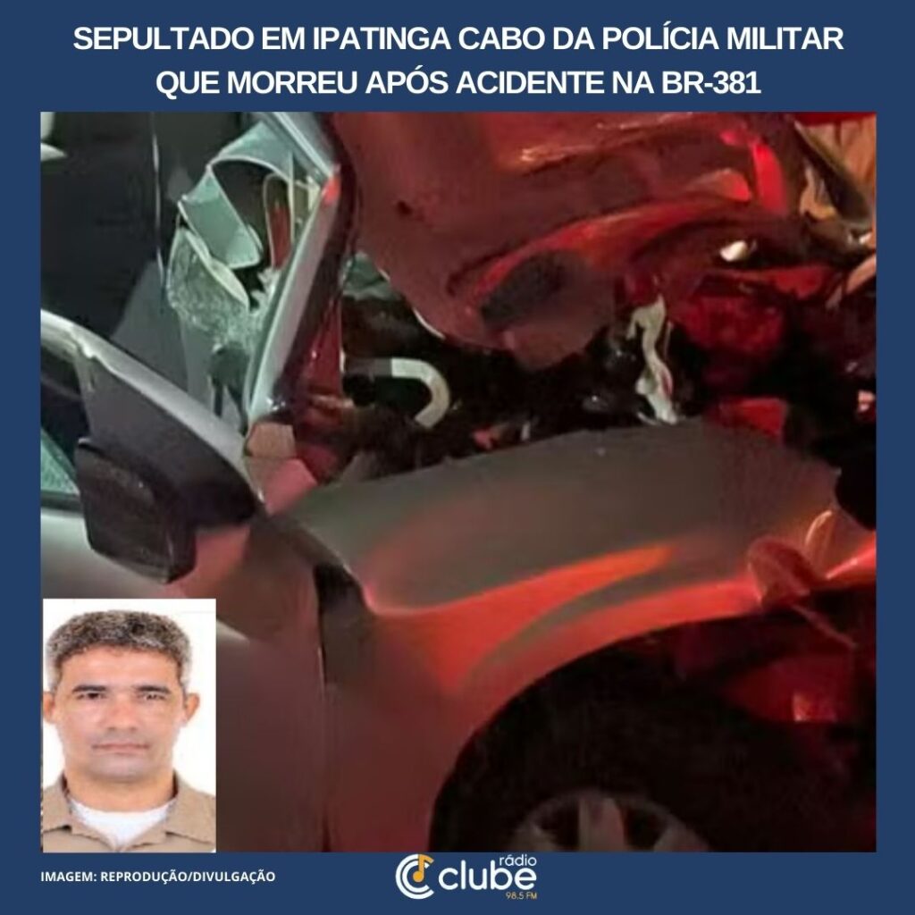 Foi sepultado na tarde deste domingo (4), no Cemitério Senhora da Paz, em Ipatinga, o corpo do cabo da Polícia Militar Gladson Almeida Fonseca, de 49 anos, que morreu em um acidente entre um carro de passeio e um caminhão na BR-381, em Coronel Fabriciano, no Leste de Minas. O velório ocorreu das 14h às […]