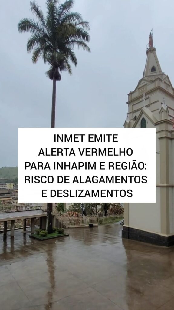 O Instituto Nacional de Meteorologia emitiu nesta segunda-feira 5 um alerta vermelho de acumulado de chuva para 135 municípios do Leste de Minas Gerais entre eles Inhapim. O aviso começa a valer às 9h desta segunda e segue até a 0h de terça-feira. O alerta vermelho é o nível máximo na escala do Inmet e […]