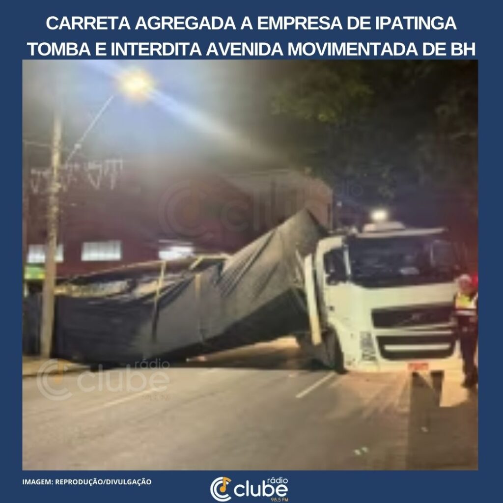Carreta agregada a empresa de Ipatinga tomba e interdita avenida movimentada de BH