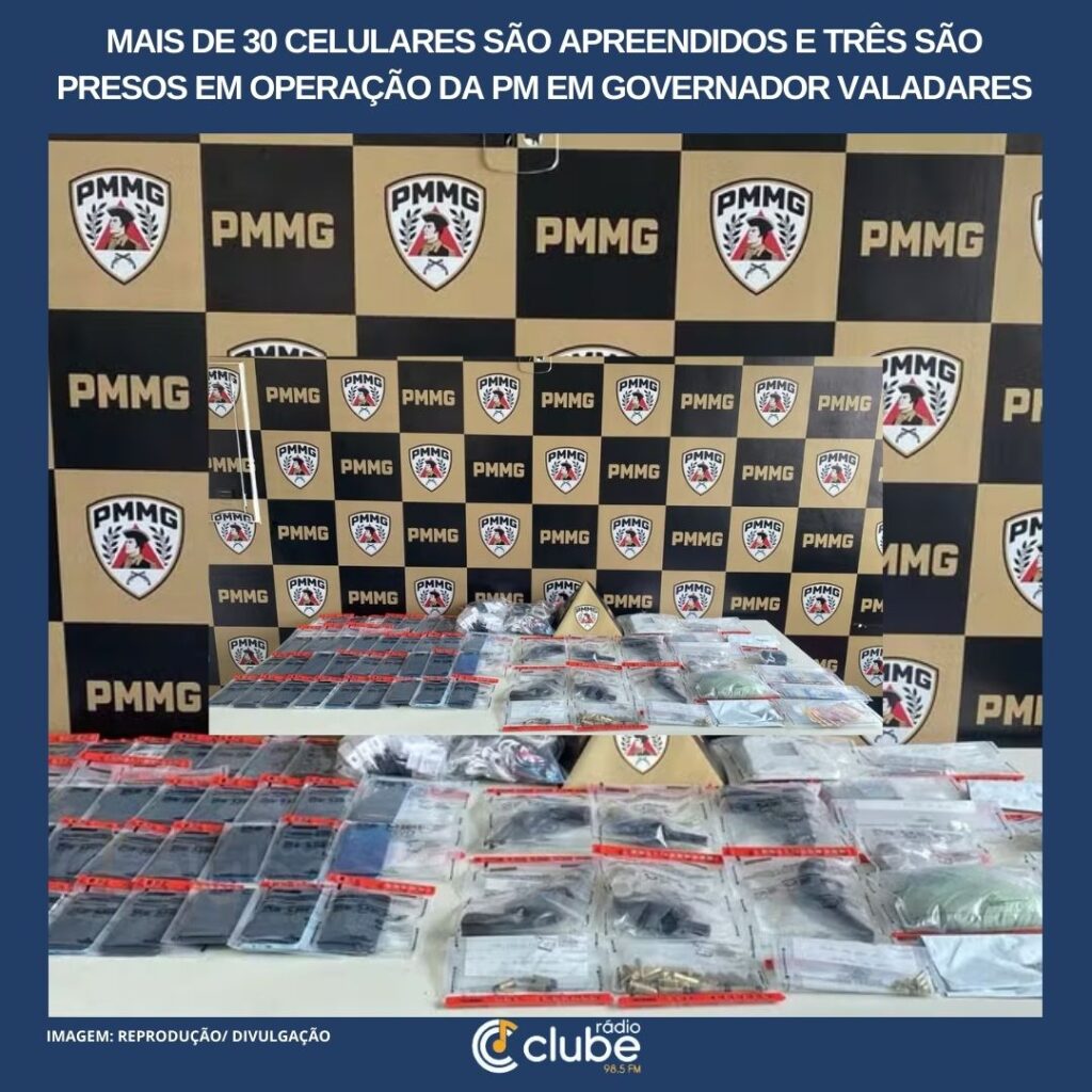 A Polícia Militar apreendeu mais de 30 celulares, cinco armas de fogo e prendeu três homens durante uma operação realizada no bairro Santos Dumont II, em Governador Valadares, no fim da noite dessa quarta-feira (17). Segundo a PM, o material apreendido seria usado para abastecer detentos em presídios da região. A ação começou após denúncias […]