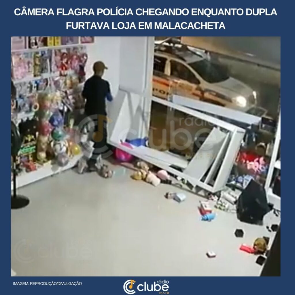 Câmera flagra polícia chegando enquanto dupla furtava loja em Malacacheta