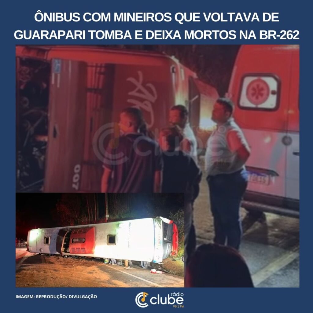 Ônibus com mineiros que voltava de Guarapari tomba e deixa mortos na BR-262