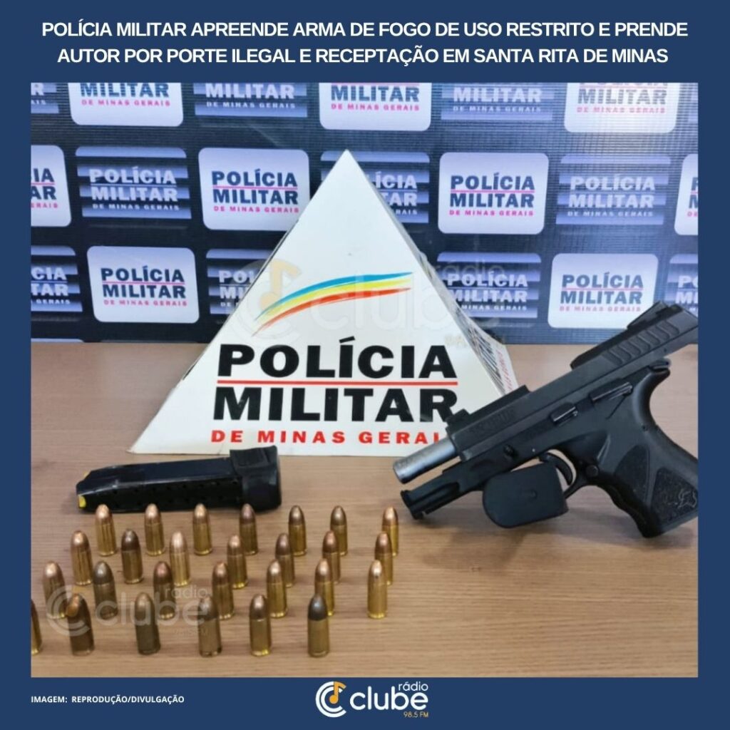 POLÍCIA MILITAR APREENDE ARMA DE FOGO DE USO RESTRITO E PRENDE AUTOR POR PORTE ILEGAL E RECEPTAÇÃO EM SANTA RITA DE MINAS