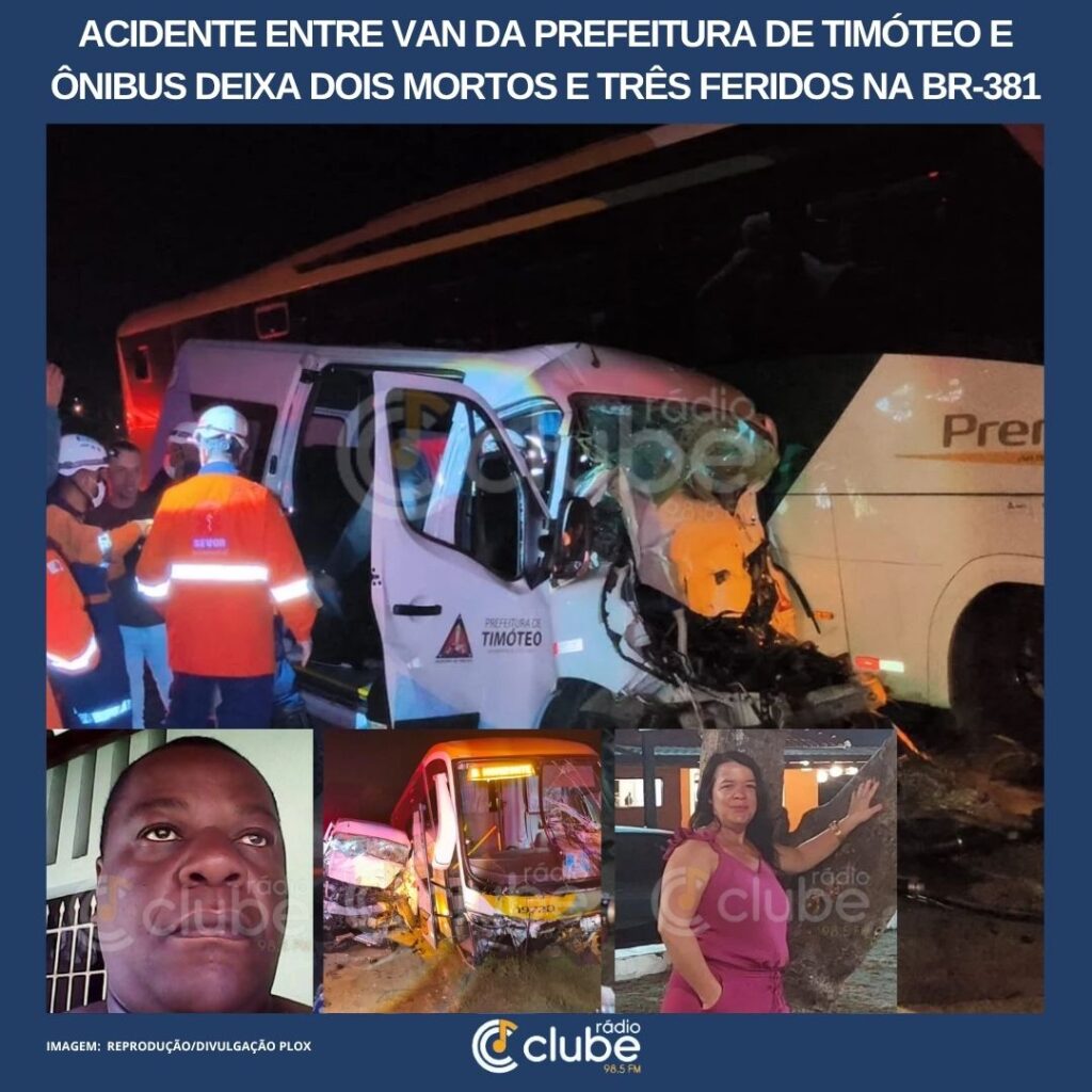 Acidente entre van da prefeitura de Timóteo e ônibus deixa dois mortos e três feridos na BR-381