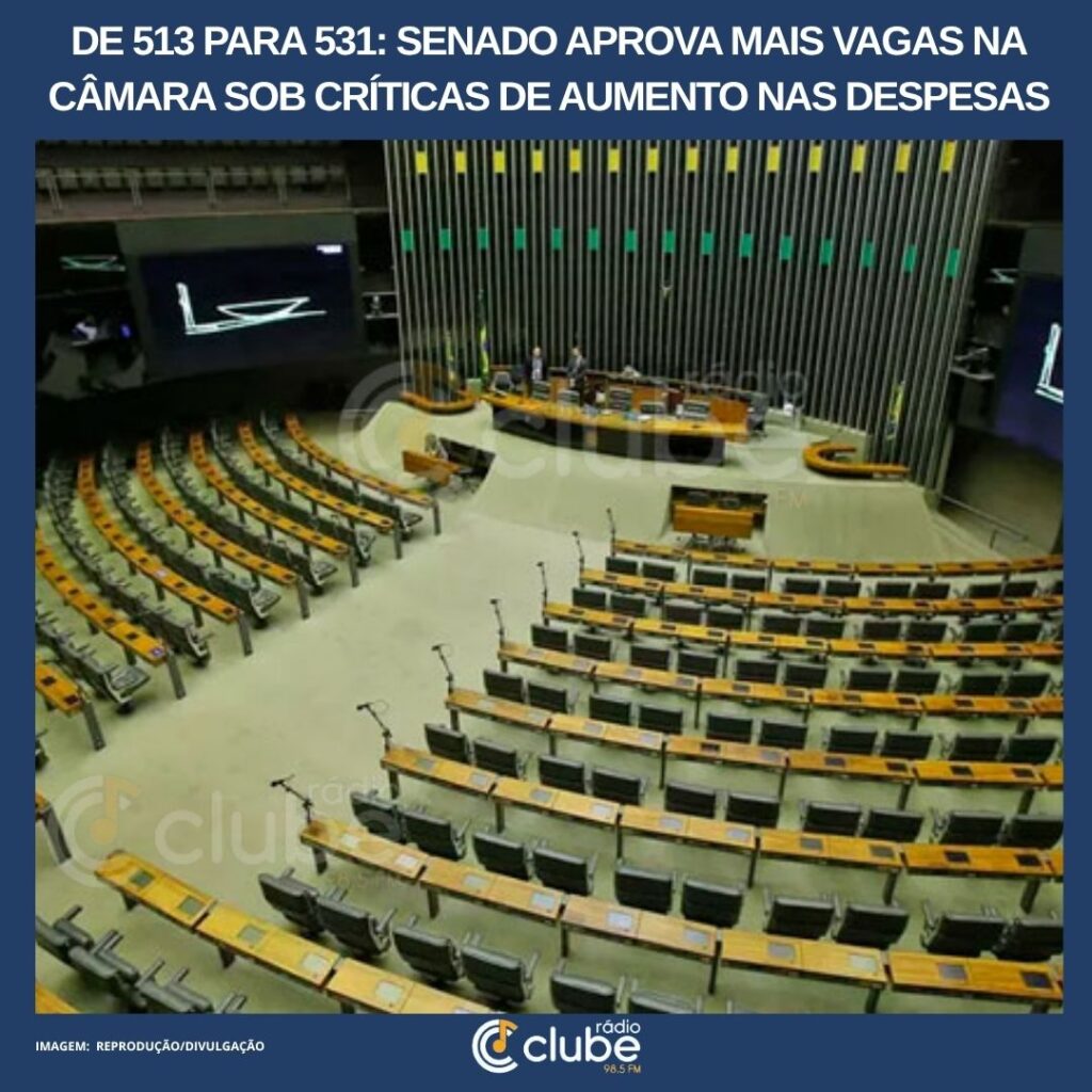 De 513 para 531: senado aprova mais vagas na Câmara sob críticas de aumento nas despesas