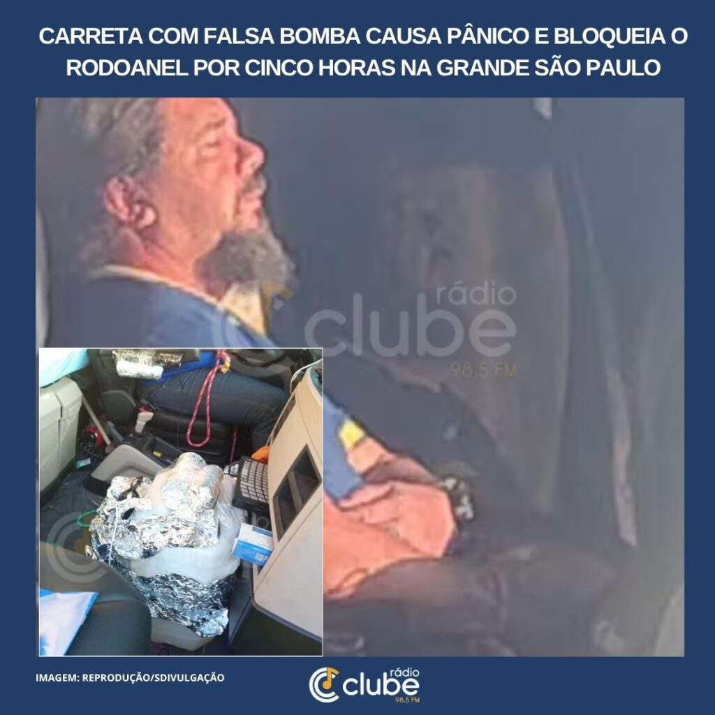 Uma carreta ficou atravessada por cerca de cinco horas no Rodoanel Mário Covas, em Itapecerica da Serra (SP), na manhã desta quarta-feira (12). O trânsito foi totalmente bloqueado após suspeita de bomba na cabine do caminhão, mas o artefato não continha material explosivo. O motorista, que estava abalado e com as mãos amarradas, afirmou ter […]